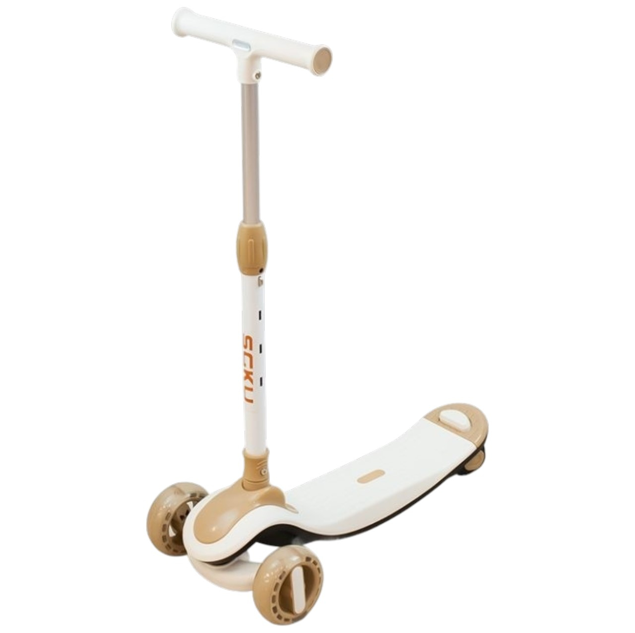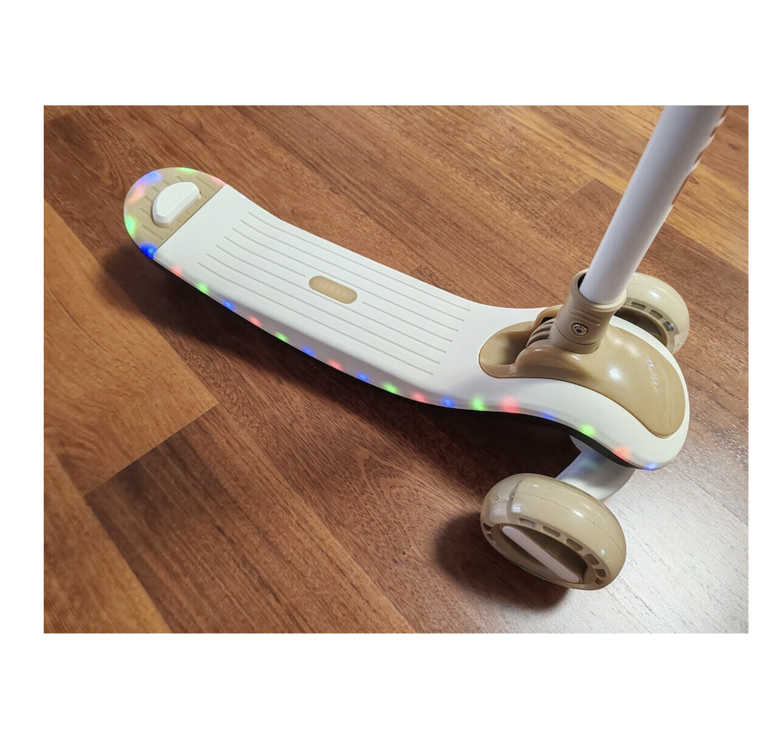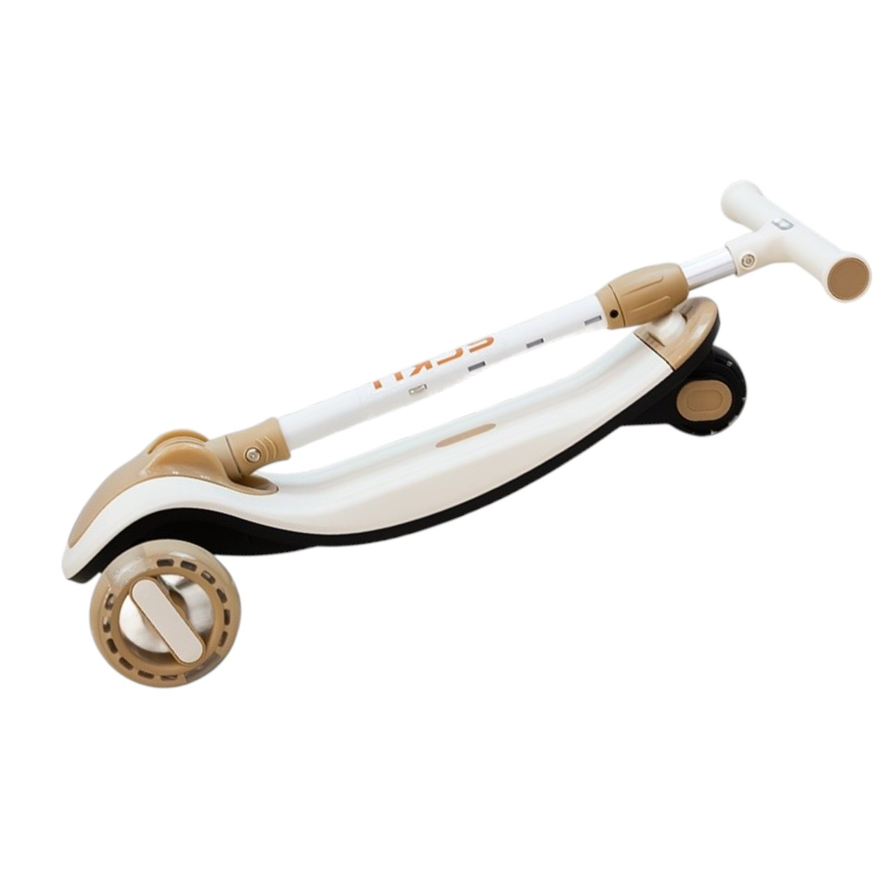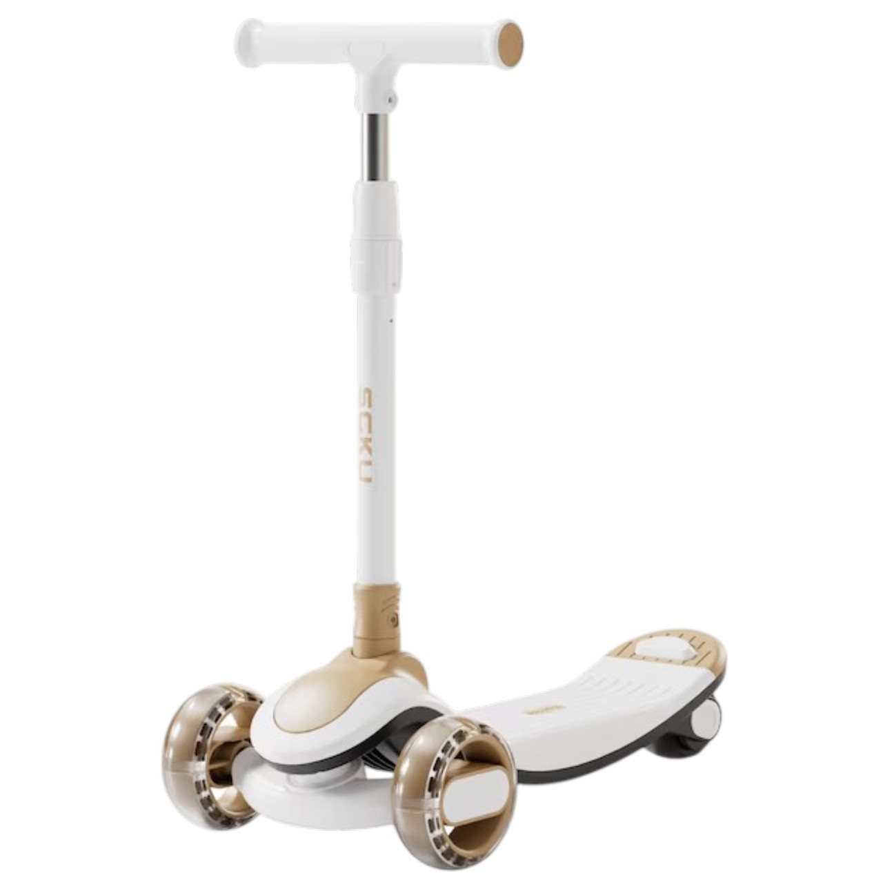 Trotineta copii 807 Crem, pliabila, reglabila 4 trepte, 3 roti, lumini si muzica, 3-10 ani