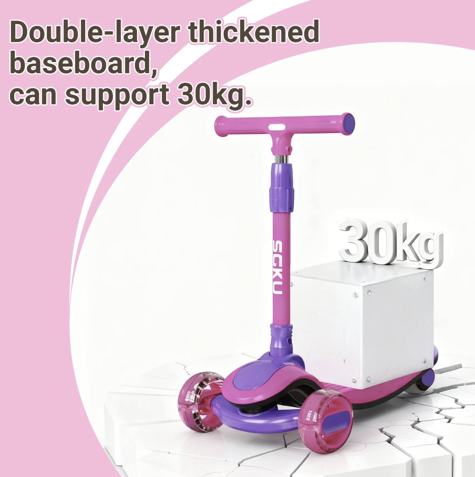 Trotineta 807 este ideala pentru copii, oferind stabilitate si control intuitiv prin inclinare. Design pliabil, cu roti luminoase si muzica pentru o experienta distractiva.