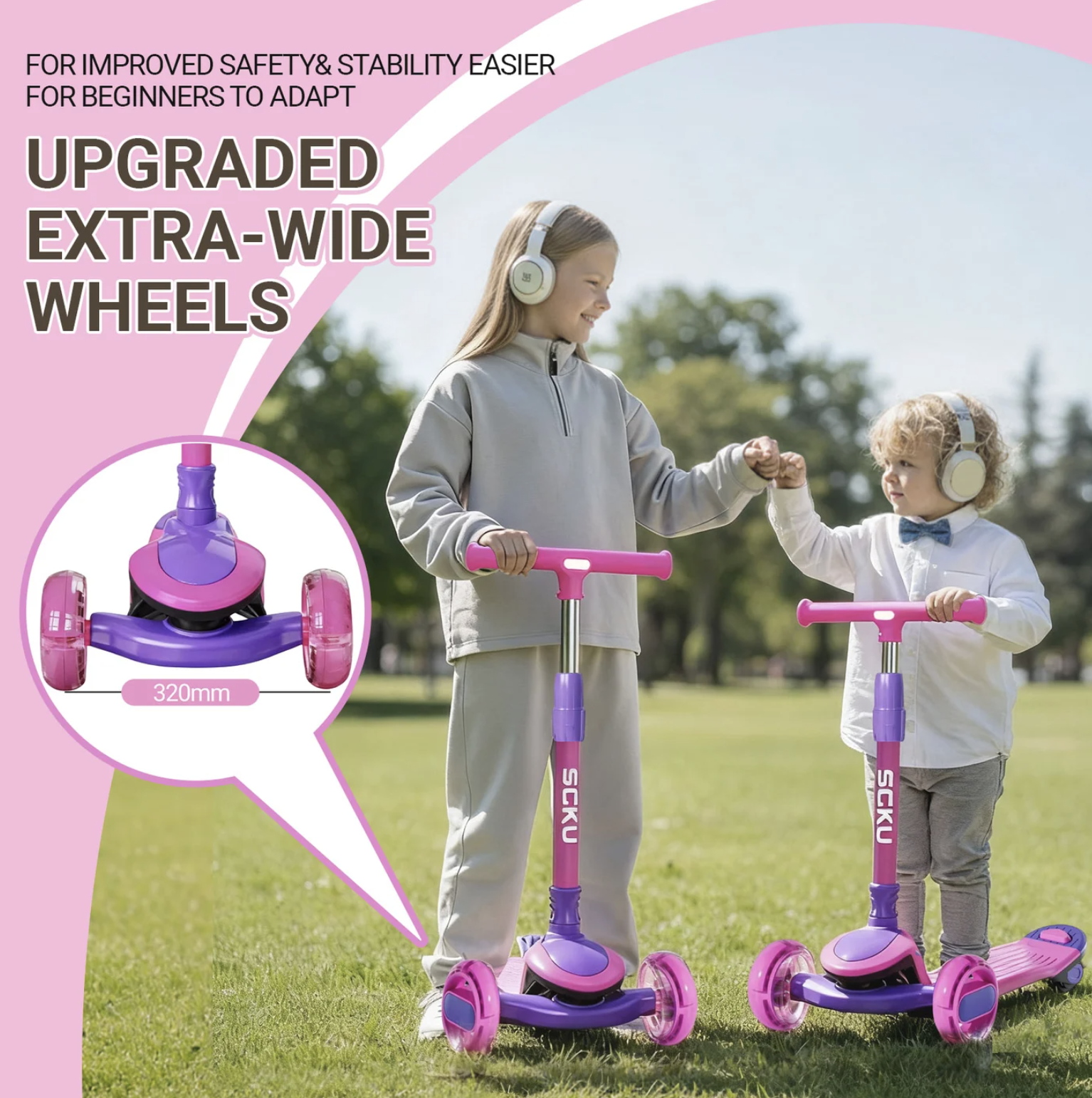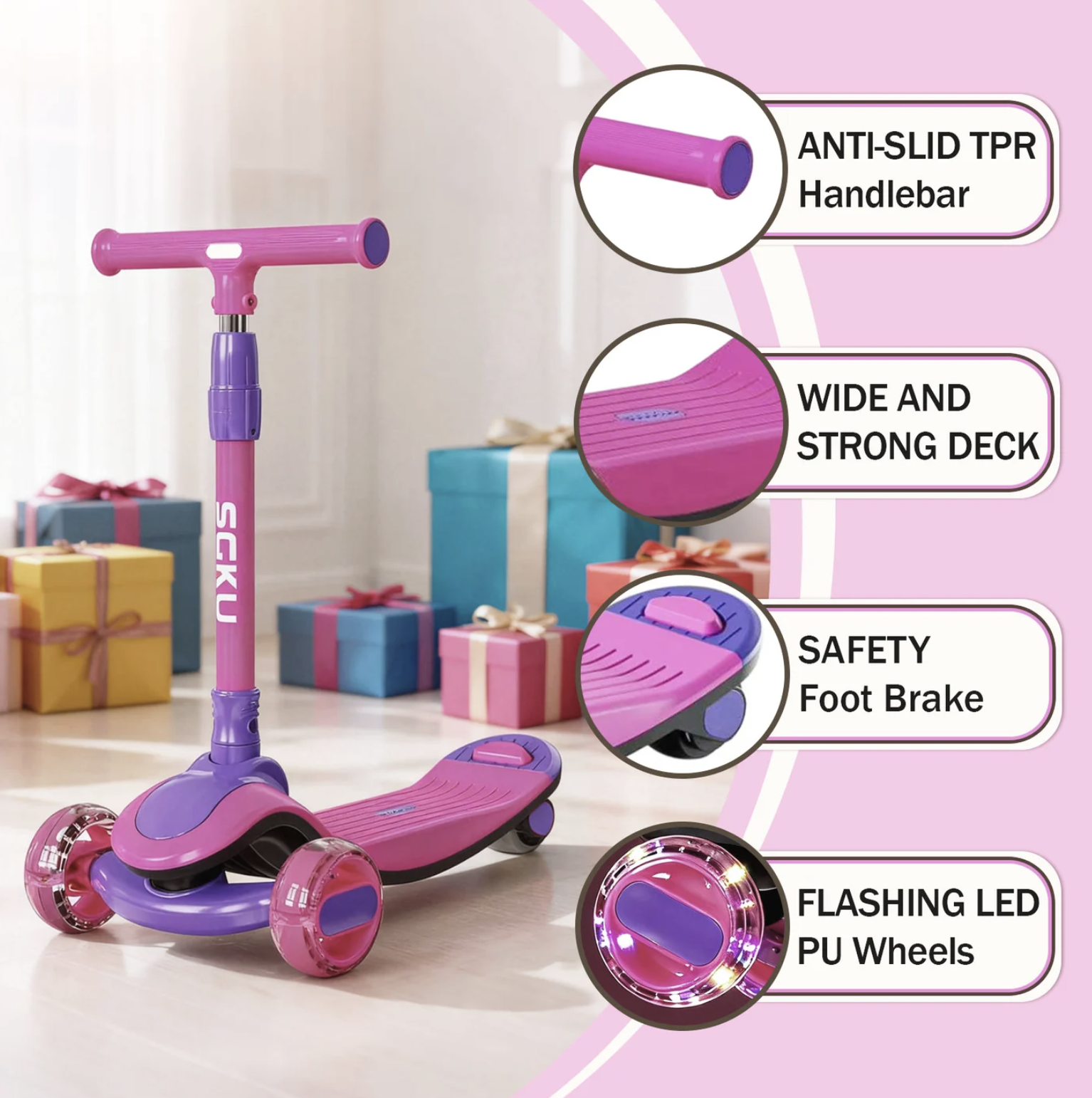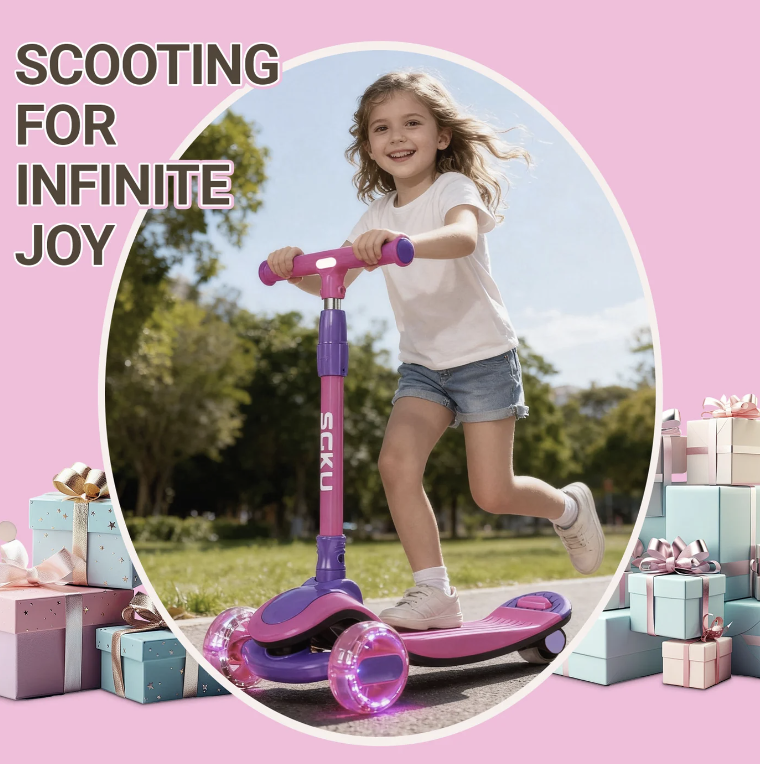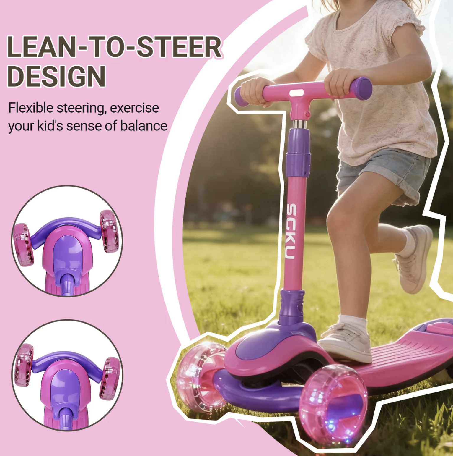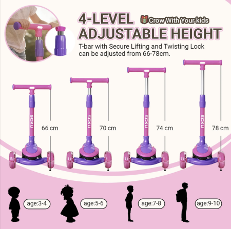 Trotineta 807 este ideala pentru copii, oferind stabilitate si control intuitiv prin inclinare. Design pliabil, cu roti luminoase si muzica pentru o experienta distractiva.