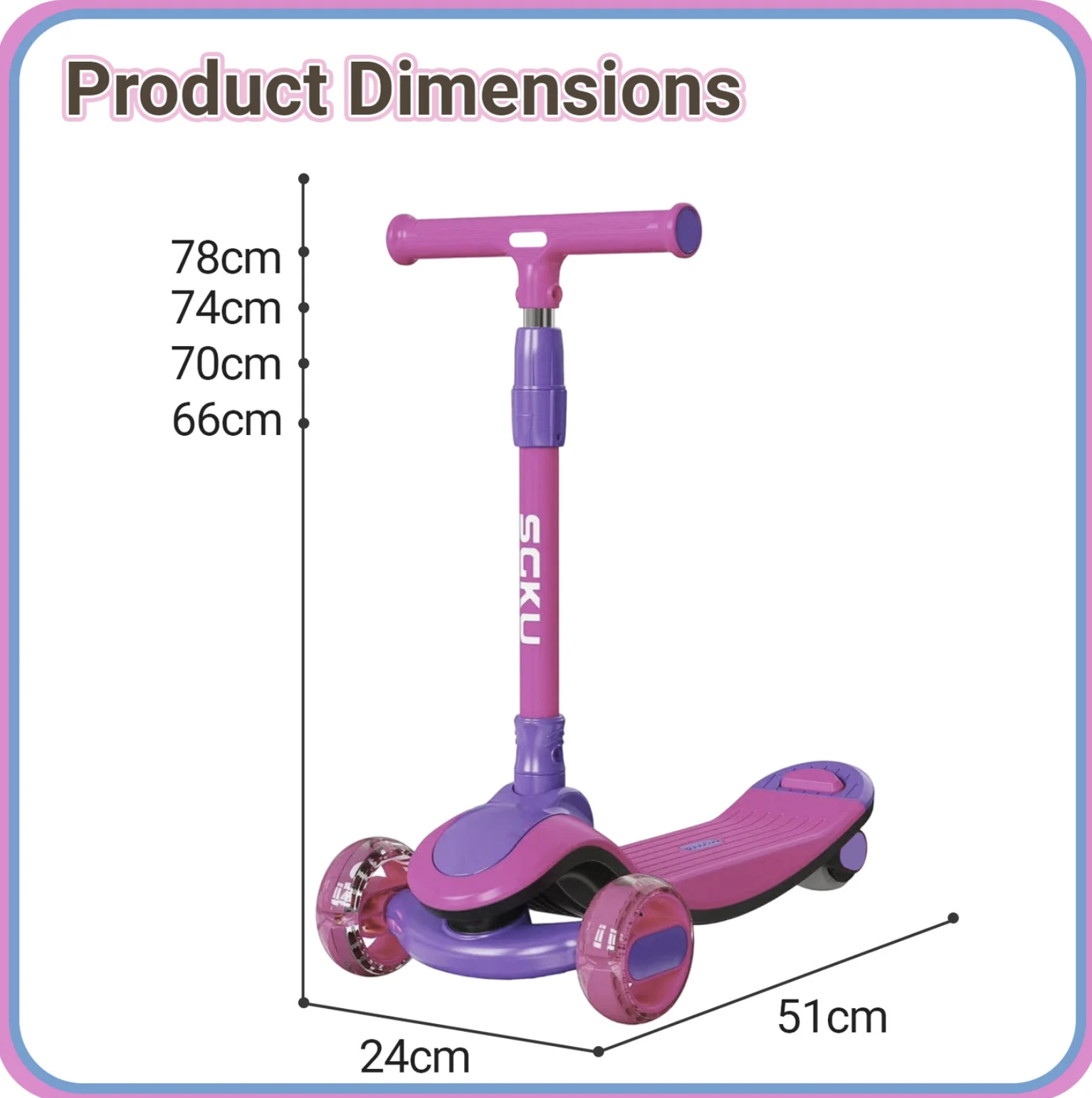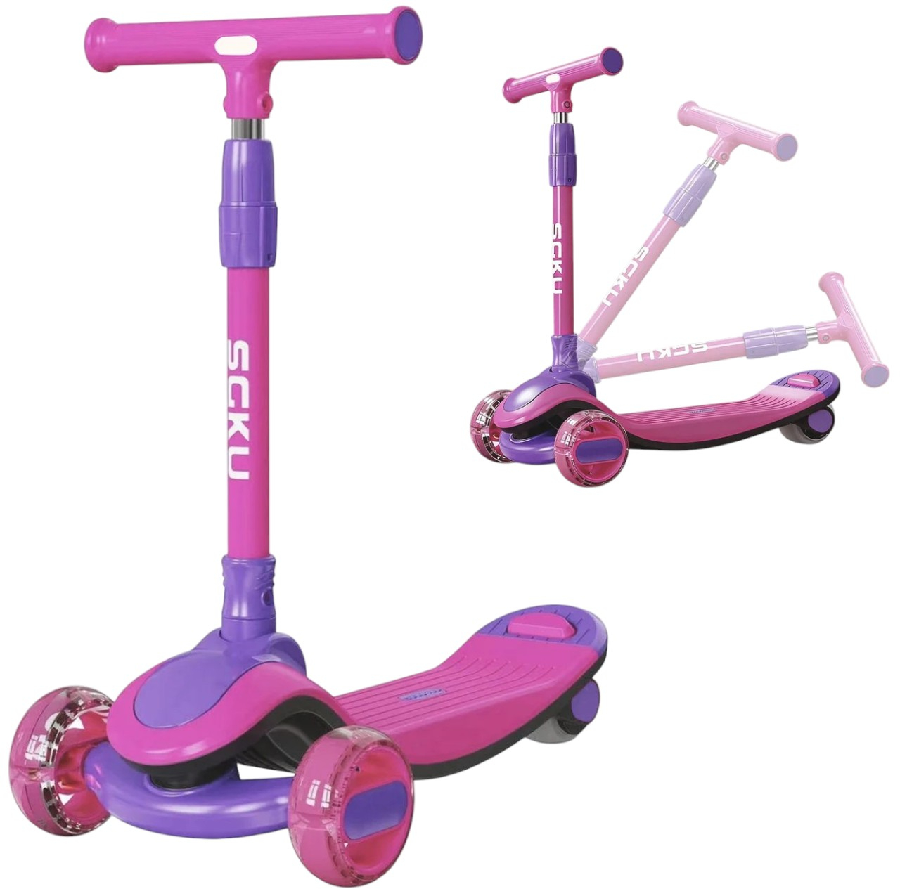 Trotineta copii 807 roz, pliabila, reglabila 4 trepte, 3 roti, lumini si muzica, 3-10 ani
