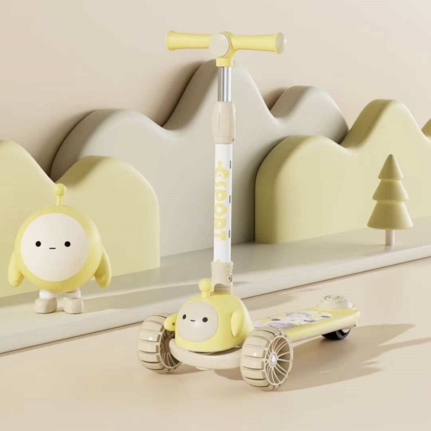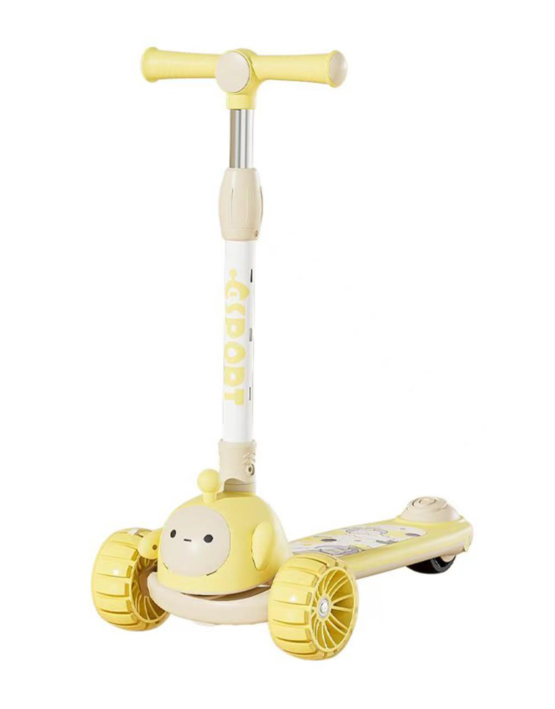 Trotineta copii C Sport 807 Galben, pliabila, lumini LED si muzica, 3 roti, 3-8 ani