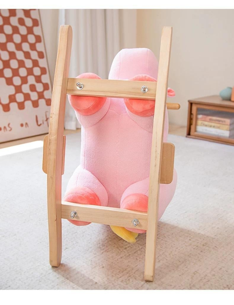 Unicornul Roz Din Plus Balansoar Si Cu Roti, cu tălpi din lemn, cu muzica.